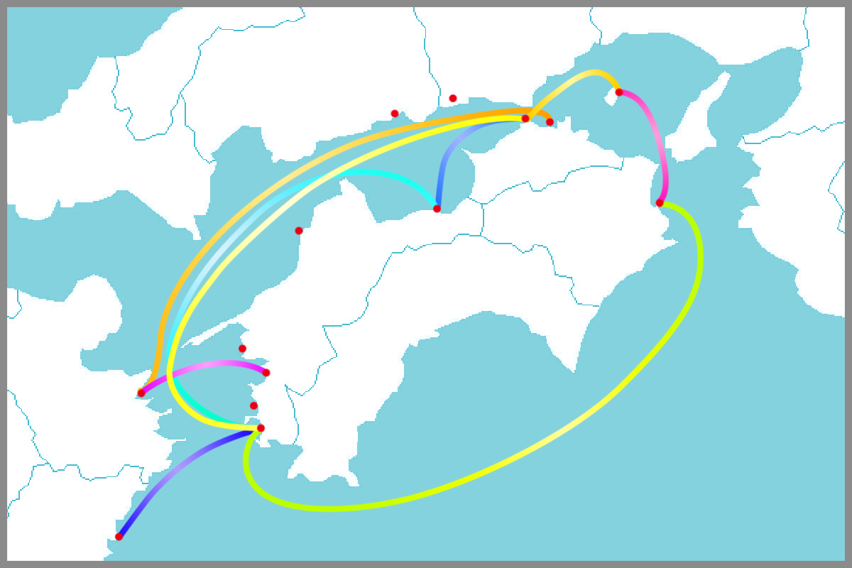 瀬戸内海を知り尽くした操船技術と、入り組んだ地形にも対応する船体を駆使して、四国4県を中心に瀬戸内沿岸をはしります。